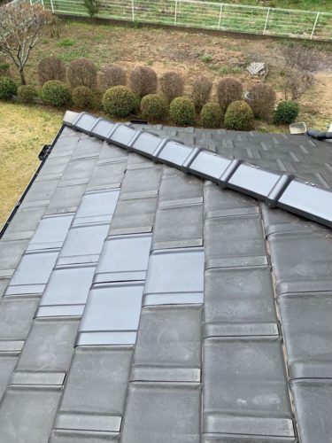 破損部の棟瓦取り直しと平瓦割れ差し替え、屋根点検をご提案いたしました。