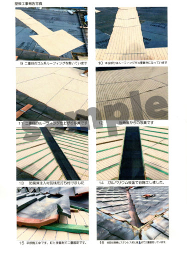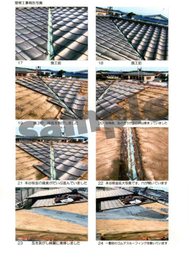 【施工前】【施工中】【施工後】のお写真と作業内容を記載した資料をお渡しさせていただいております。