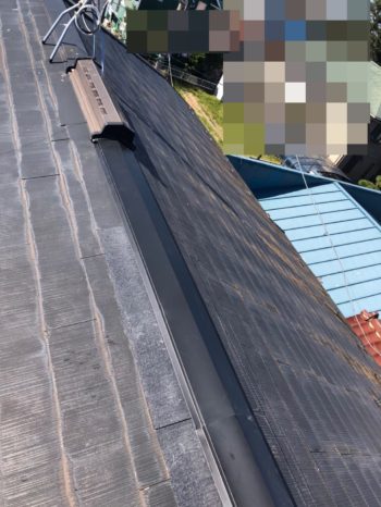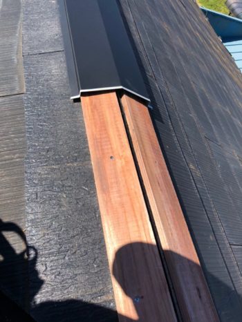 既存の換気棟板金に新規棟板金を加工・留付したところです