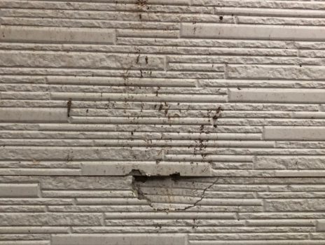 施工前 外壁に穴が開いてしまっています