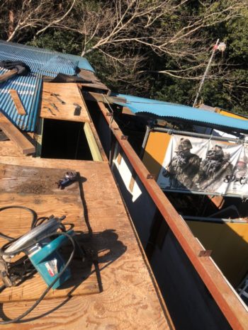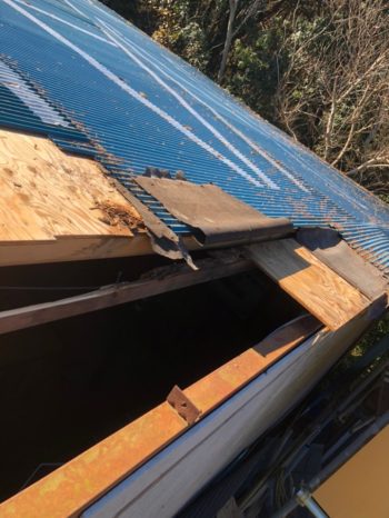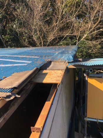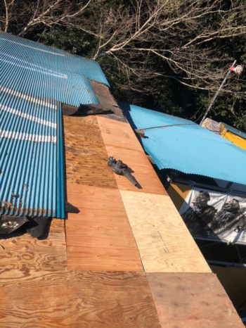 破損屋根撤去・野地ベニヤ補修