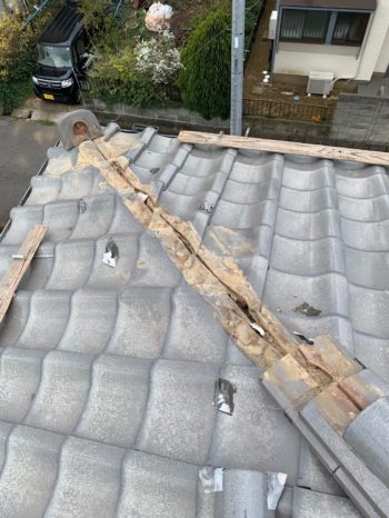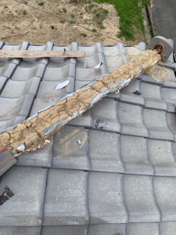 ご提案内容 前年度に屋根点検をした際に棟瓦の一部が劣化していました。