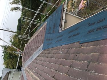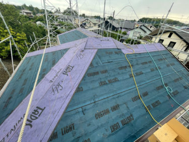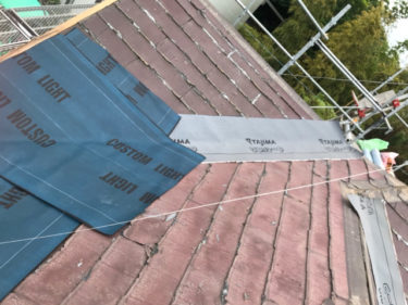 防水紙を敷き終わりました