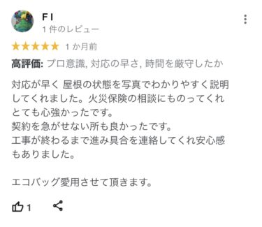 対応が早く、屋根の状態を写真でわかりやすく説明してくれました。