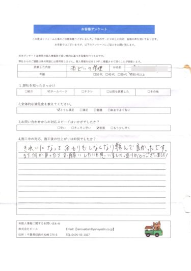 綺麗になって雨漏りもしなくなり頼んで良かったです。