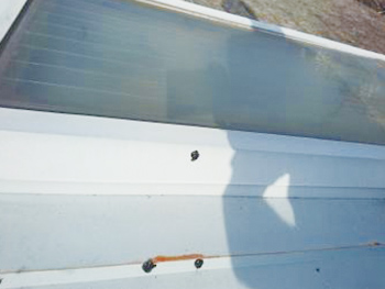棟板金が飛んだ影響で破損(キズなど)が見られます。