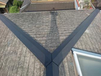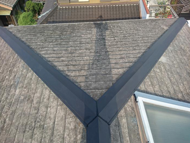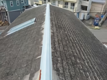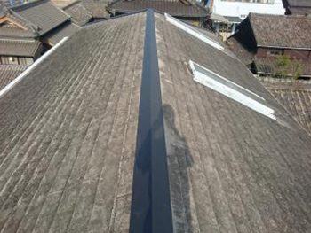 既設の棟板金と幅を合わせて、屋根材の色むらが見えないように施工しました。