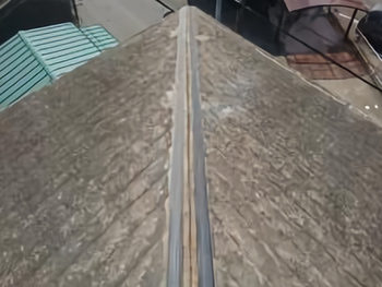 棟板金の一部が飛んでしまっていて、下地となる貫が腐ってしまっていて、飛んでいない棟板金の釘もあまりきいていなくて、サビなども見られたため、棟板金一部の修理と全ての棟板金(貫下地)の取替え工事と二通りのご提案をさせていただきまして、お客様は全ての棟板金取り替え工事をご希望されました。 サービス工事としまして2つの天窓の釘頭のコーキング施工をさせていただきました。 |