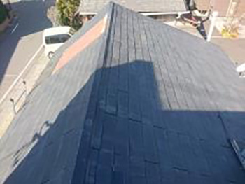 屋根全景です。全体的に屋根材の劣化が見受けられます。