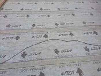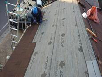 工程③ 既設屋根材の上にゴムアスルーフィングを張りました。