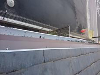 工程④ ケラバ板金を取り付けました。ケラバ板金も本体同様に天然石粒コーティングされています。