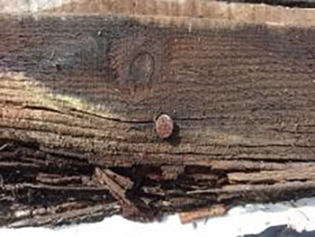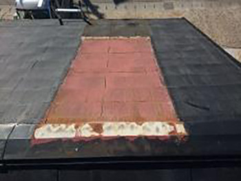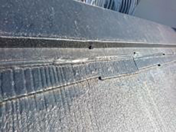 以前、温水器が乗っていた跡で、棟板金のサビが目立ちます。