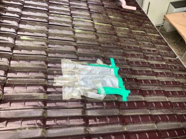 台風被害を受けた平部分の瓦です。雨水が侵入しないよう、旦那様が養生されていました。