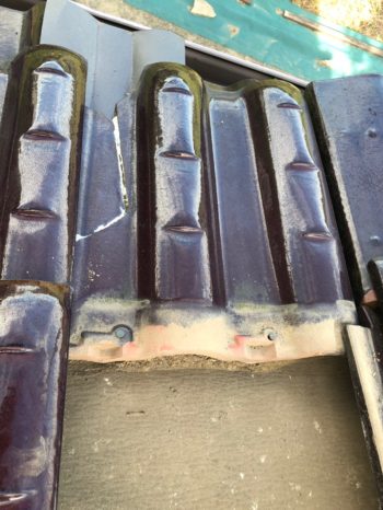 割れている部分の瓦と周りの瓦を剥がしたところ