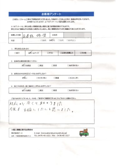 | お客様のご要望 | 去年の台風で瓦が割れてしまったので、修理をしてほしいとのご依頼がございました。 |