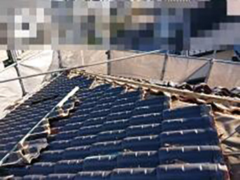 | お客様のご要望 | 台風の強風で屋根瓦が飛んでしまい、インターネットで調べたところ、ホームページを見つけて修理の依頼をしました。(M様より) |