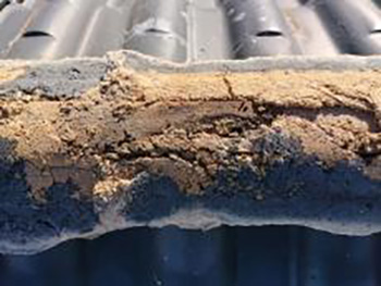 棟瓦を捲ると、土は砂状に劣化しており、下地の垂木は腐ってしまっていました。これでは棟瓦を留め付けている釘は効いていません。
