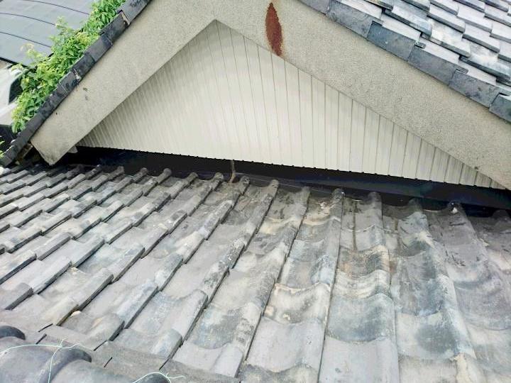 板金屋さんからの工事依頼で、谷樋板金と割れている瓦から雨漏りしているので、谷樋廻りの瓦(葺土)のめくり及び復旧と、割れた瓦の差し替え工事を行いました。 谷樋板金は板金屋さんにて工事を行いました。 |