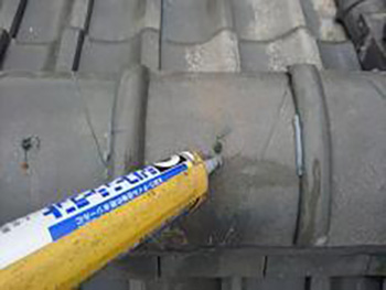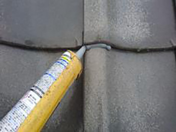 棟の全伏間瓦の穴をコーキングにて塞いでいます。