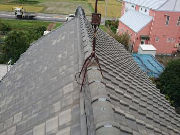 | お客様のご要望 | 台風の強風によって瓦が数枚飛んでしまって自分で直そうとしたが、うまくできなかったため、修理の依頼と屋根全体の点検(葺き替える必要があるのかなど)をお願いしようと、ネットで検索したところホームページを見つけて依頼をしました。(T様より) |