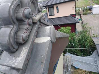 鬼下の巴漆喰が劣化して剥がれてしまっています。